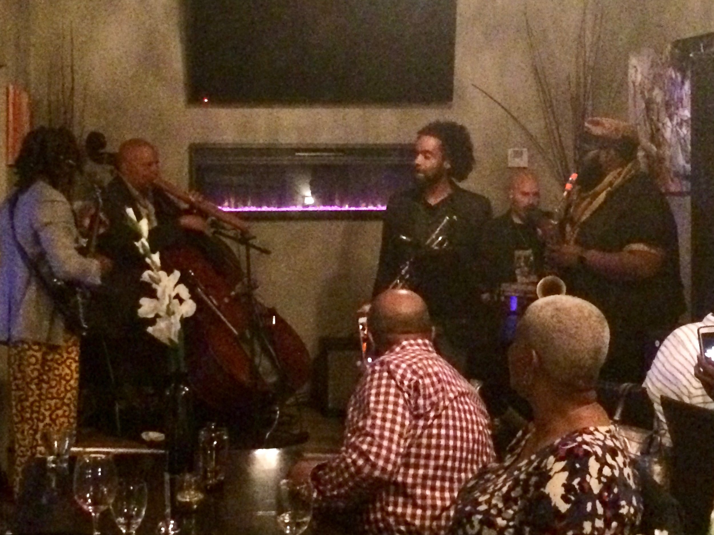 The core quartet of myself, Bobby Raymond on bass, Monvelyno Alexis on guitar and vocals, and Godwin Louis on soprano & alto sax, was also joined by the wonderful Mr. Jean Caze, one of the finest trumpet players you will hear. Jean was gracious enough to sit in with us for most of the evening, and we had a blast. Jean is featured prominently on both my first CD - Tanbou nan Lakou Brooklyn, and my first Soundkeeper Release, Equinox. - See the discography page for samples and links. The crowd was most attentive and supportive, and a wonderful time was had by all!